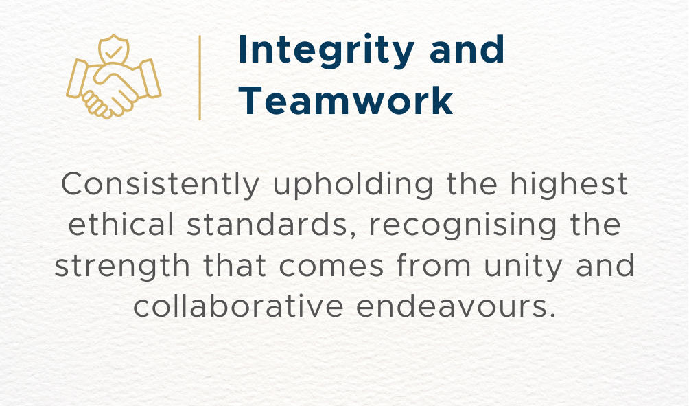 Our foundational values are deeply embedded within our organisational fabric. These principles are instrumental in guiding our interactions, decisions, and strategies, ensuring we are adaptive in a rapidly evolving business landscape while remaining a pivotal contributor to the industry and the broader society